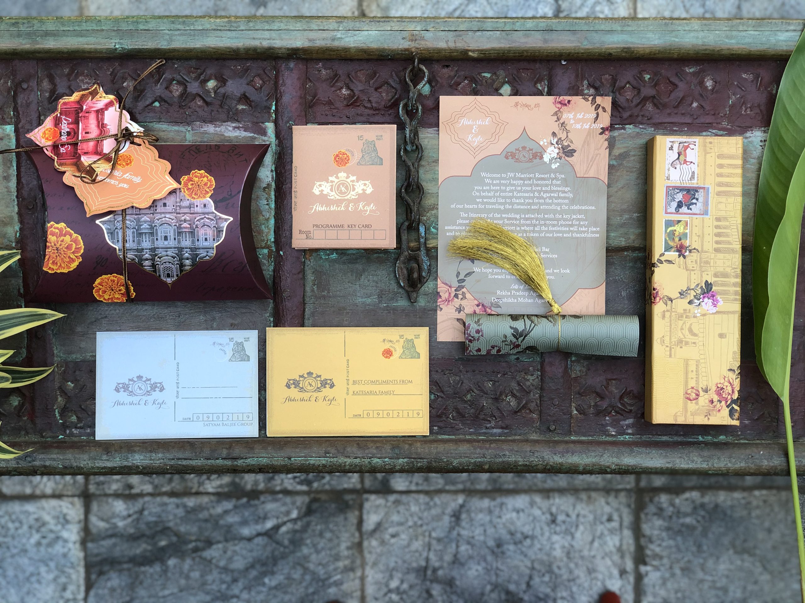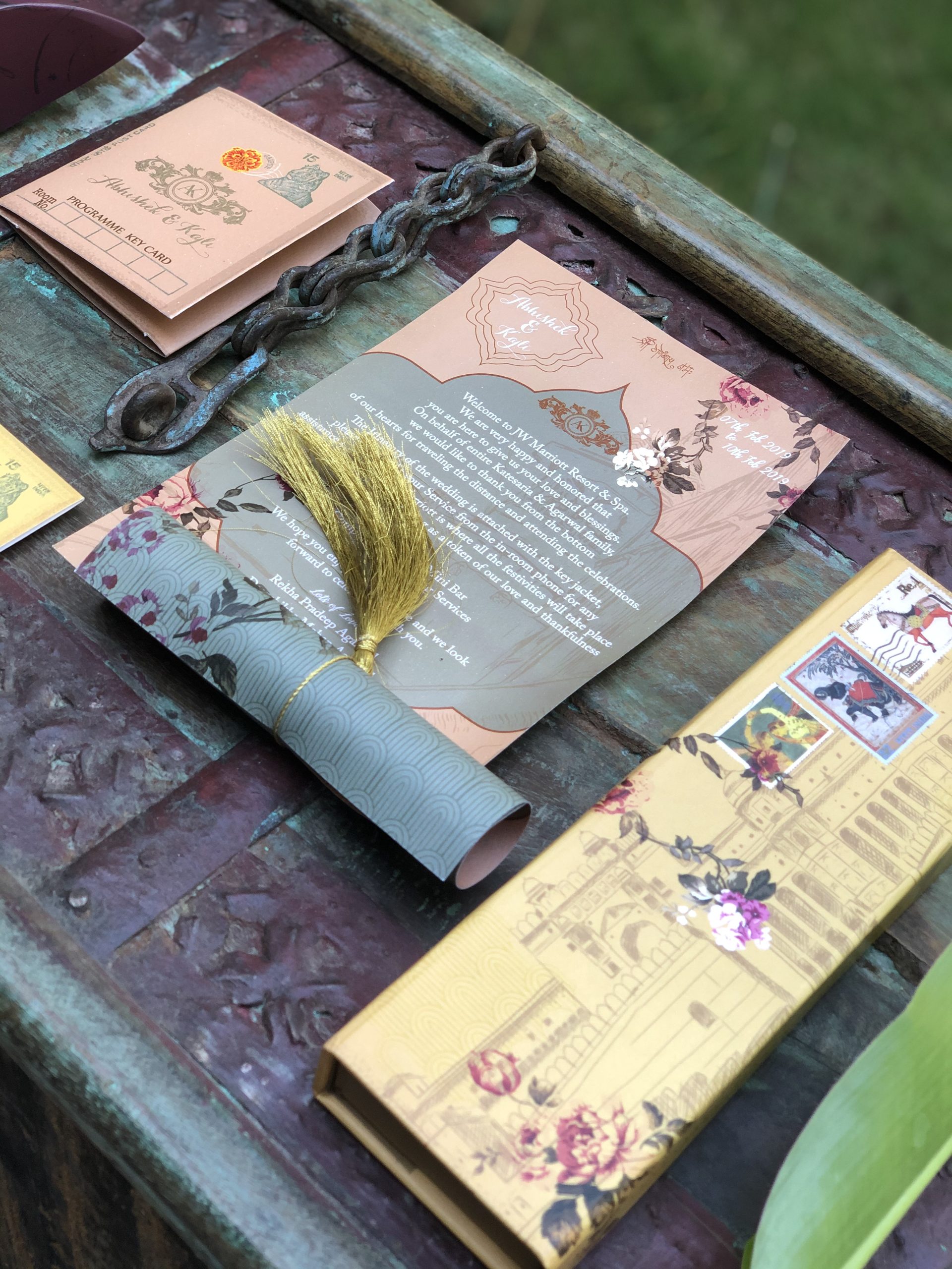 Our Jaipur-inspired wedding invitation is more than just a beautiful design – it’s a postcard-perfect design.It’s a glimpse into the magic of your special day and a taste of the royal treatment that awaits.